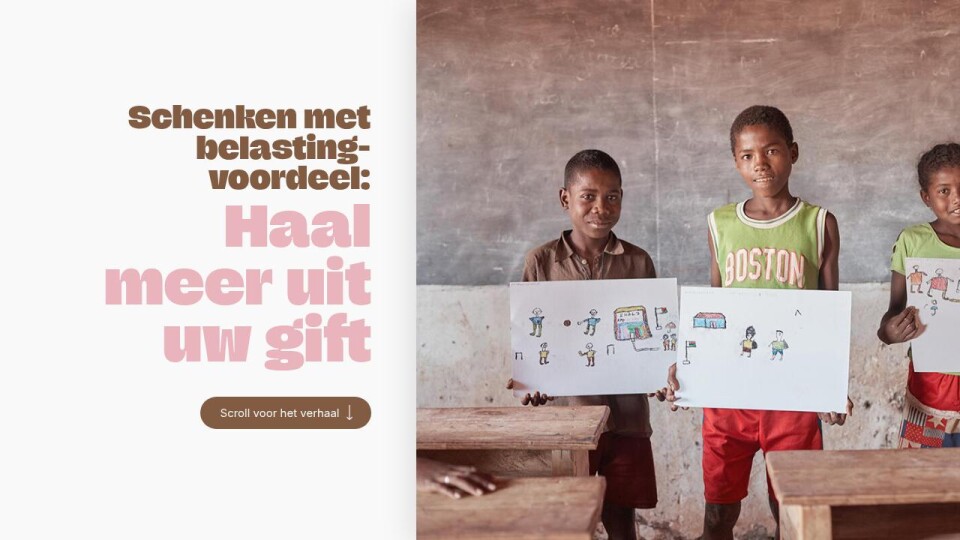 Meer impact: Veel donateurs kiezen ervoor om het belastingvoordeel terug te geven aan Terre des Hommes. Zo steunt u ons met een hoger bedrag, terwijl uw eigen uitgave gelijk blijft.
