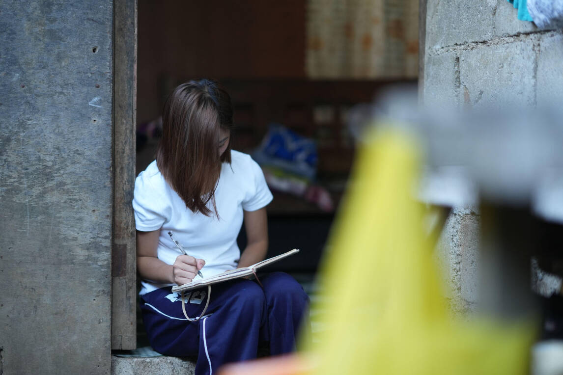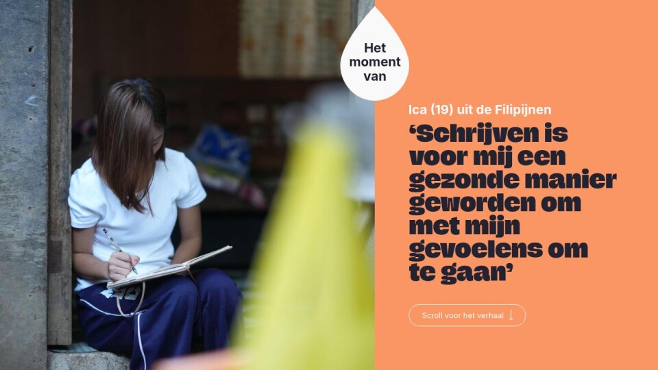 ‘Ik heb veel vrienden verloren door wat ik heb meegemaakt en voelde me erg geïsoleerd. Bij het Terre des Hommes project CONEC (Creating a safer Online Environment for Every Child) kregen we een dagboek. Ik schrijf niet elke dag, maar vooral als ik mijn emoties kwijt moet of het gevoel heb dat ik met iemand wil praten. Het helpt me om mezelf beter te begrijpen. Schrijven is voor mij een gezonde manier geworden om met mijn gevoelens om te gaan.’